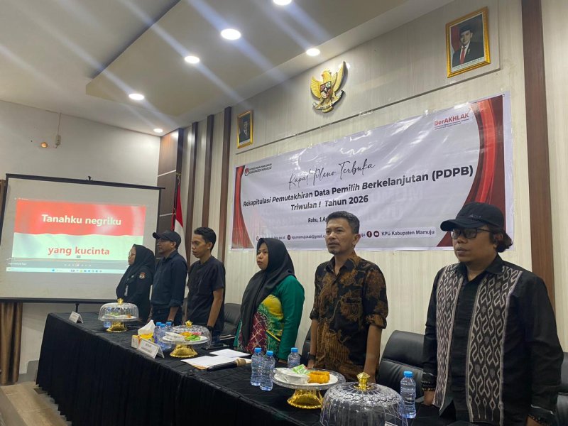 Komisi Pemilihan Umum (KPU) Kabupaten Mamuju melaksanakan Rapat Pleno Rekapitulasi Daftar Pemilih Berkelanjutan (PDPB) Triwulan I Tahun 2025 pada Rabu, (1/4/2026). Kegiatan yang digelar di Aula Husni Kamil Manik Kantor KPU Kabupaten Mamuju ini dihadiri oleh Asriani selaku Anggota KPU Provinsi Sulawesi Barat, Ketua dan Anggota Bawaslu, Kasat Intel Polresta Mamuju,Pasi Intel Dandim 1418 Mamuju, Rutan Kelas IIB Mamuju, Disdukcapil Kabupaten Mamuju, serta Pimpinan Partai Politik Kabupaten Mamuju. Ketua KPU Kabupaten Mamuju Indo Upe, menyampaikan rapat pleno ini dilaksanakan sebagai tindak lanjut dari ketentuan Pasal 19 Ayat (1), (2), dan (3) Peraturan KPU Nomor 1 Tahun 2025, yang mengamanatkan KPU untuk melakukan rekapitulasi PDPB melalui rapat pleno terbuka setiap tiga bulan sekali. “Hari ini, 1 April 2026, KPU Kabupaten Mamuju melaksanakan rapat pleno rekapitulasi daftar pemilih berkelanjutan Triwulan I Tahun 2026. Hal ini merupakan kewajiban kami sesuai Peraturan KPU Nomor 1 Tahun 2025, agar data pemilih selalu mutakhir dan akurat,” ujar Indo Upe. Dalam rapat tersebut, Anggota KPU Kabupaten Mamuju, Hasdaris selaku Divisi Perencanaan, Data, dan Informasi memaparkan Jumlah Data Pemilih Laki-laki sebanyak 100.012, Perempuan sebanyak 97.717, Total Jumlah Data Pemilih sebanyak 197.729. Proses pemutakhiran data pemilih, termasuk data pemilih baru, pemilih yang tidak memenuhi syarat, dan perbaikan elemen data pemilih ini menjadi salah satu langkah strategis dalam memastikan hak pilih warga terlindungi. “Kami terus melakukan pemutakhiran data, baik penambahan pemilih baru, penghapusan data pemilih yang tidak memenuhi syarat, maupun perbaikan data pemilih. Semua ini demi menjamin hak pilih masyarakat Kabupaten Mamuju tetap terjaga, Kita ingin memastikan setiap warga negara yang memenuhi syarat tercatat dalam daftar pemilih” tutup Hasdaris. Rapat pleno berlangsung terbuka dan berjalan lancar, dengan komitmen seluruh pihak untuk terus memperkuat data pemilih sebagai salah satu pilar penting penyelenggaraan pemilu yang demokratis dan berkualitas. ....