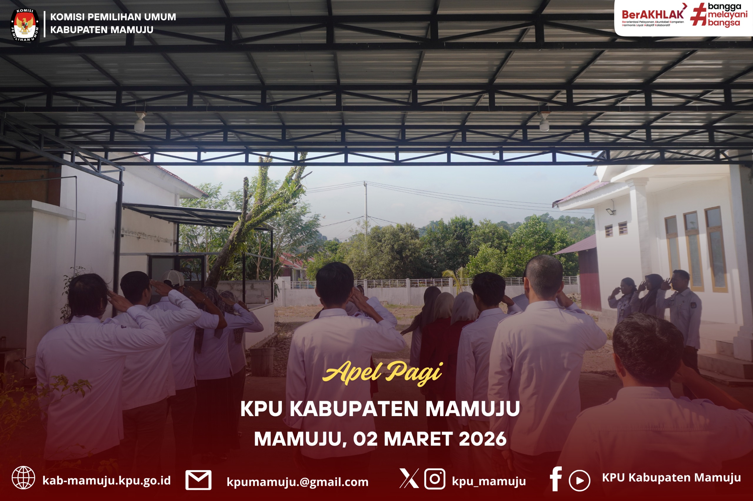 Mamuju - KPU Kabupaten Mamuju melaksanakan apel pagi rutin pada Senin (2/3/2026) di halaman kantor KPU Kabupaten Mamuju. Apel ini diikuti oleh seluruh pegawai KPU Kabupaten Mamuju.