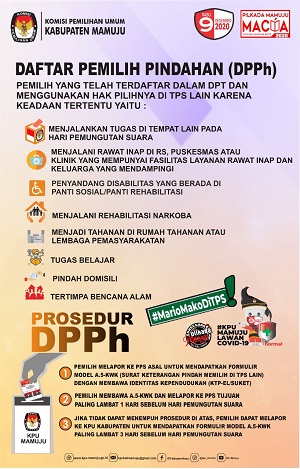 Komisioner KPU Mamuju, Asriani menjelaskan, keadaan tertentu yang dimaksud dalam DPPh di atas diantaranya Pemilih sedang menjalankan tugas di tempat lain pada hari Pemungutan Suara, menjalani rawat inap di RS, Puskesmas atau Klinik yang mempunyai fasilitas layanan rawat inap dan keluarga mendampingi, penyandang disabilitas yang berada di panti sosial atau panti rehabilitasi, menjalani rehabilitasi Narkoba, menjadi tahanan di rumah tahanan atau lembaga pemasyarakatan, tugas belajar, pindah domisili, dan tertimpa bencana alam.