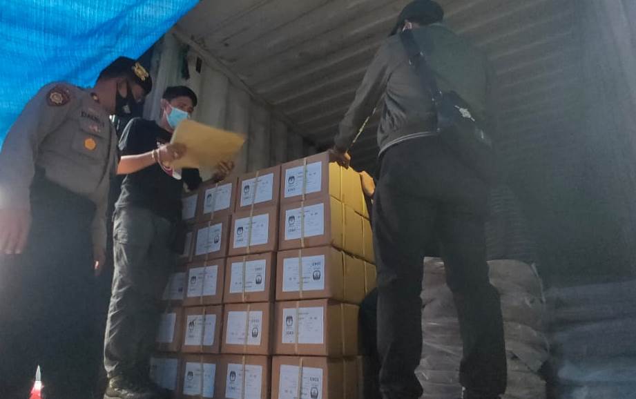 Karena ia diproduksi oleh PT. Temprina Media Grafika di Jember. surat suara berikut sampul tersebut harus diseberangkan via kapal laut menuju Makassar, Sulawesi Selatan. Tiba di pelabuhan Makassar pada hari Jumat, 14 November 2020. Masih tersegel.
