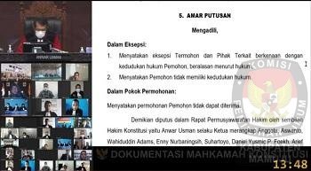 "Namun patut diketahui, bahwa sidang pengucapan putusan ini berbeda dari sidang sebelumnya karena dilakukan secara daring. Maka tidak ada satu pihak pun yang hadir langsung di MK. Mereka cukup hadir melalui ruang virtual saja, ” jelas Muhidin.